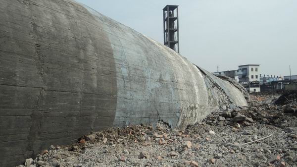 承接本工程的河南省现代爆破技术有限公司,多次对现场勘查,对方案进行多次论证修改,组织省内知名专家进行现场指导设计,最终确定了技术方案。在现场技术人员、施工人员的共同努力下,排除各种艰难,于4月5日15:18分准时起爆。两建筑物完全按预定方向倒塌。周围建筑、管道及其它设施完好无损丝毫没有受到损坏,受到厂方领导、莅临专家的一致认可和好评。