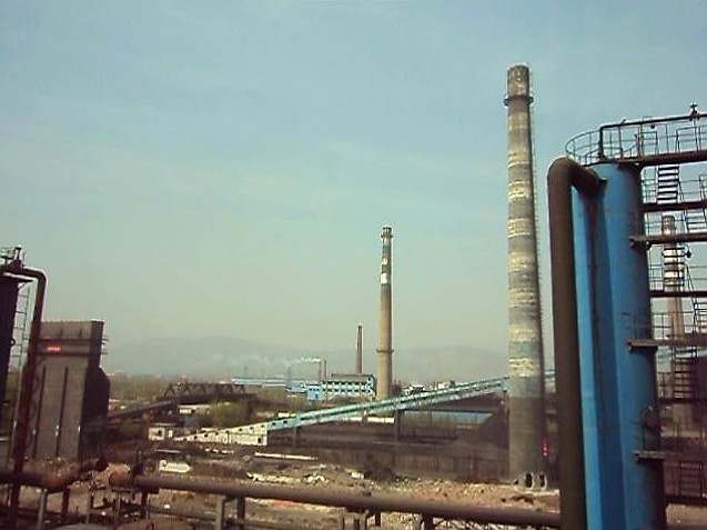 熄焦塔位于一期拆除区的西北侧,东西长15m,南北宽8m,共两排8根混凝土立柱,四周墙壁为壁厚30cm的砖墙,高度为46m。熄焦塔东侧为拆除后的空地,南侧15m为变压器房,西侧约5m处为煤气管道,北距厂区正在使用的管道35m。爆破倒向向正北方向倒塌,爆破倒塌方向前方70m为不得中断运输的铁路。
