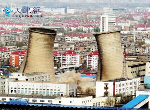 天津网讯 城市快报记者 王昊 昨日(4月8日)15时许,随着爆破人员的倒数声,陈塘热电有限公司两座60米高的冷却水塔实施了定向爆破拆除。随着“轰”的一声巨响,塔底部翻起巨大的烟尘,两座冷却水塔在爆破的作用力下出现倾斜,但倒塌效果不理想,两座冷却水塔没有倒塌。据此次爆破项目的监理单位工程师介绍,此次爆破是严格按照爆破设计施工的,目前施工单位正在分析倒塌效果不理想的原因。