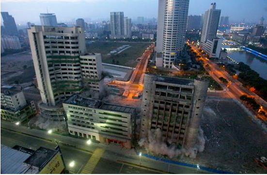 早报讯 昨天5时30分,宁波雅戈尔滨江大厦、宁波银行大厦成功爆破拆除,仅仅8秒钟,400公斤炸药便使两座高楼成了废墟。