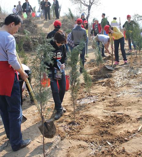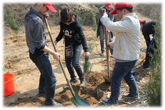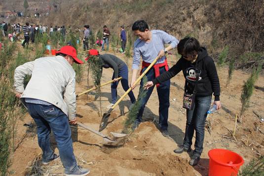 2014年是郑州市创建国家森林城市的冲刺年,为完成本年度指标,郑州市林业局组织了长达一个月的植树活动。每周周六日由各单位自由组织,义务参加植树活动。作为基层党组织,为郑州绿化事业增绿添彩是我们义不容辞的责任。一年之计在于春,一天之计在于晨,一大早现代爆破公司几十人一同来到万山,分工合作,精心植树。有的挖坑,有的挑水,有的植树苗,干劲十足、热火朝天。我们不仅注重植树的多少,更加关注植树的质量,每一棵树苗我们都精心培育,先挖坑、植树苗、填部分土,再浇水,待水完全浸在土内后再继续填土,然后再浇水,一步一步,认认真真,保证我们所种树木的成活率。大家充分享受着劳动的乐趣和自己培育小树苗的喜悦,不一会儿,一排排小树苗直立在光秃秃的荒山上,远远望去,一片绿油油的景象。