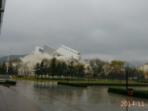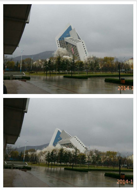 威海香威大酒店爆破拆除项目(高度103米),该项目属于排危爆破项目(前期已被当地拆除队伍破坏性的拆除大量承重构件,对于后期爆破设计和结构稳定难度非常大),我公司投入了大量的人力、物力,通过反复研究、模拟实验,最终决定根据香威酒店“三叶风车式”的建筑风格,制定定向爆破、向西南方向倒塌的方案。本次爆破效果非常理想,取得圆满成功!