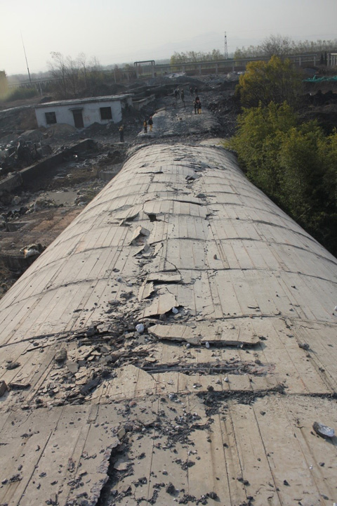 驻马店市局有关领导及多位爆破专家亲临现场指导工作,审定和评估通过我司设计的向西定向倒塌的爆破施工技术方案。