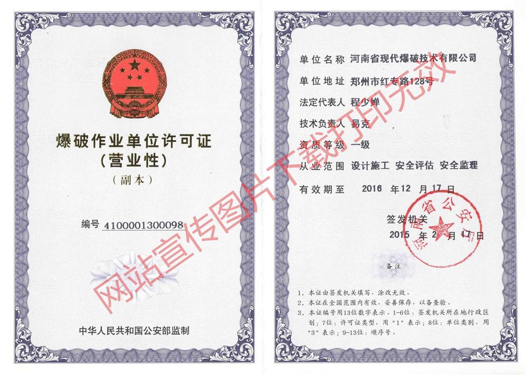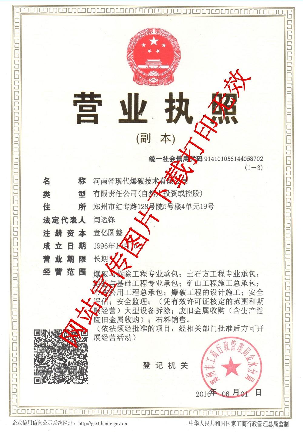 版权所有:河南省现代爆破技术有限公司 豫ICP备13007239号 技术支持:企汇网网站建站专家 营业执照信息公示