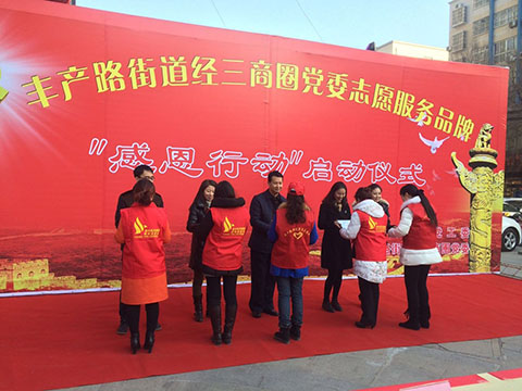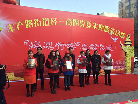 2016年1月15日,现代爆破公司党支部参加了丰产路街道经三商圈党委志愿服务品牌“感恩行动”启动仪式,并作为两新组织代表在启动仪式上做了发言。现代爆破公司党支部自2008年成立以来,在支部书记易克同志的带领下,认真做好党建工作,积极开展各项党务活动。一直以来,公司党支部不断开展各种党员志愿者活动,如低碳知识宣传教育、免费送芹菜、义务植树、爱心助学、扶贫助残等,通过实际行动,学习雷锋精神,传播爱心,宣传公益,受到上级工委及广大群众的一致好评,今天,在经三商圈的“感恩行动”启动仪式上,我们现代爆破公司党支部被授予“爱心企业”成员单位的荣誉称号。