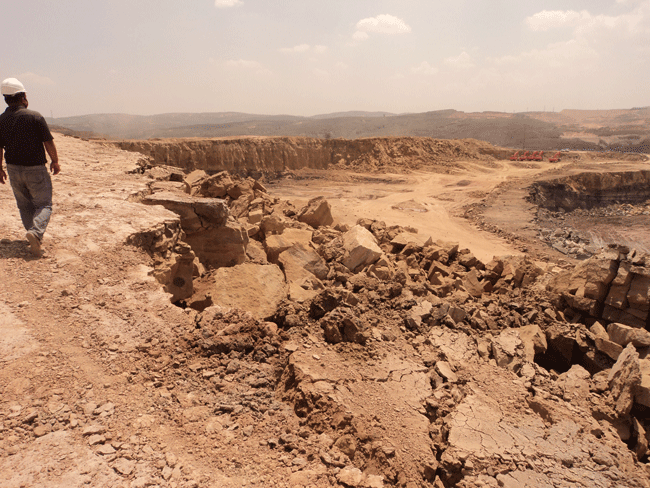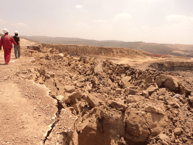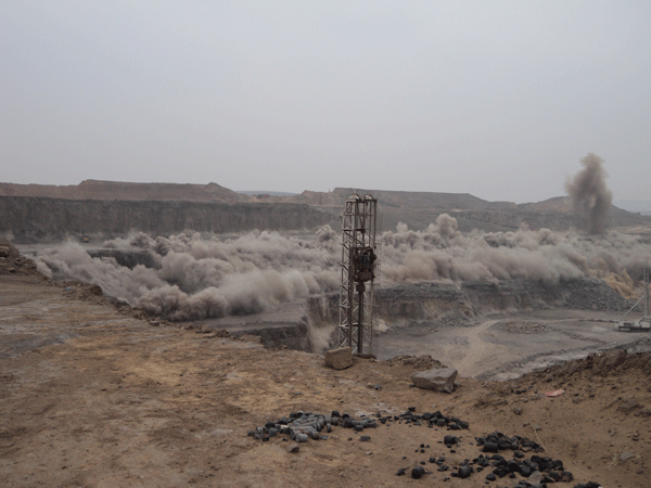 该工程地处内蒙古哈尔乌素,四个中标企业交叉施工、人员设备车辆多、对于爆破飞石控制要求较高,爆破当天气温-18℃而且下起了中雪,更是加剧了施工困难。但是在我公司驻地员工的共同努力下,采用“孔外和孔内延期分段爆破相结合”的爆破技术,顺利准时起爆,一次爆破总方量达10万方。爆破效果十分理想。该工程第一爆的顺利完成和良好势头为该工程的后续施工奠定了良好的基础,同时也获得相关领导和部门的一致认可和赞扬。