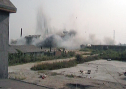 新疆苇湖梁电厂180m烟囱和两座90m冷却水塔成功爆破