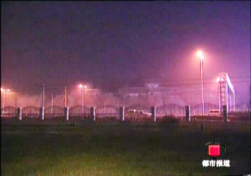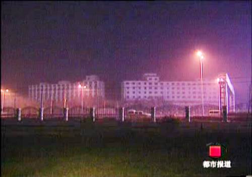 新疆苇湖梁电厂180m烟囱和两座90m冷却水塔成功爆破