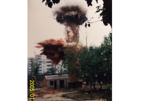 新疆苇湖梁电厂180m烟囱和两座90m冷却水塔成功爆破
